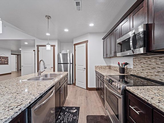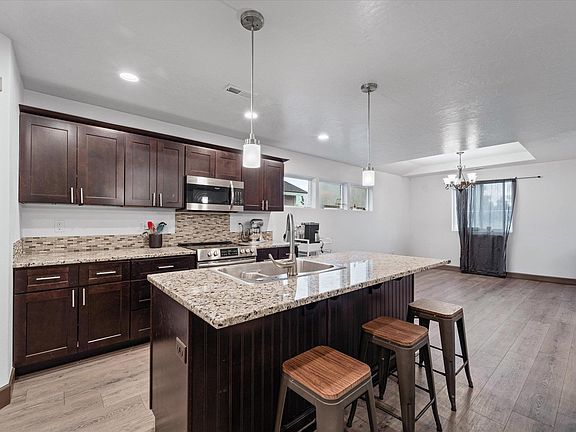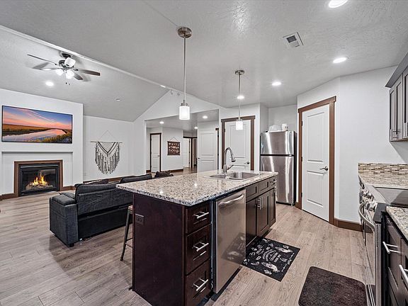MLS# 280438 Stunning home, built in 2021, offers the perfect blend of modern design and cozy design. Spanning nearly 2,000 square feet, this 3-bedroom, 2-bath residence is thoughtfully designed with comfort and style in mind. Step inside to find luxury vinyl plank (LVP) flooring throughout the common areas, providing both durability and elegance. The spacious kitchen, featuring granite countertops, a generous island and ample cabinet space, making it a dream for both casual meals and entertaining. The open-concept layout flows seamlessly into the living area, where a cozy electric fireplace adds warmth and charm. The large primary suite features a separate tub and shower and spacious walk-in closet. While two additional bedrooms offer space for everyone. Outside, enjoy the large covered patio and fenced yard. The property backs directly onto a lush golf course, creating a peaceful and private backdrop.