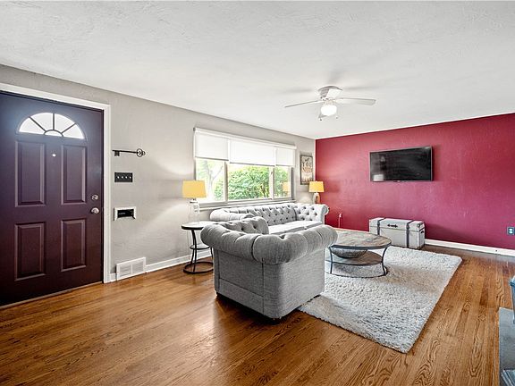 Sleek and stylish with a crisp palette of today's colors! Sun splashed living room and large eat-in kitchen features white quartz work surfaces and cabinetry, stainless steel appliances and gorgeous tile flooring! Gleaming hardwoods! Generously sized bedrooms and updated main bath. Fabulous lower level game room with a second fireplace and half bath. Spacious deck leads to private backyard that's great for entertaining with firepit area and vegetable garden! Potential for two car tandem, currently storage room behind garage. Perfectly placed on the cul-de-sac section of Rockfield with close proximity to I-79, I-376, Downtown PGH, St. Clair Hospital, parks & shopping!