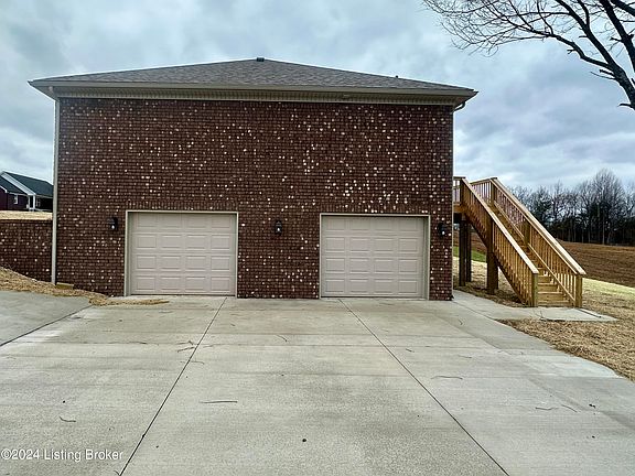 New construction with walk out basement featuring 2 car garage on lower level that is 28.5 ft wide and. 23.5 ft deep with additional 12x4.5 and 20'x5 storage areas and has been roughed in for 3rd bathroom. Main level provides 3 large bedrooms and 2 full baths in a split/open plan design. Kitchen features center island with seating and storage cabinets on both sides. Plenty of natural light, decorative ceilings, engineered hardwood flooring throughout main floor with carpeted bedrooms. Covered front porch with a deck off kitchen and a concrete patio below. Two nice shade trees in the backyard and a low maintenance lot on a quiet street in Oak Ridge Subdivision just minutes from downtown Bardstown. Plenty of room for the family here. Take a look today!