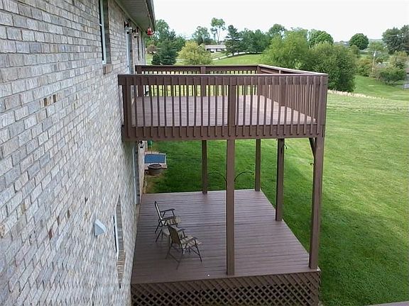 Beautiful home in Southern Hills with georgous view. Home has 3-5 bedrooms, 3 full baths, 2 car garage; large living/dining room, big eat-in kitchen with lots of cabinetry. Master bedroom has setting area. Full unfinished basement, already plumbed for kitchen, finished bath, garage. Home has lots of extras. Great landscaping also.
