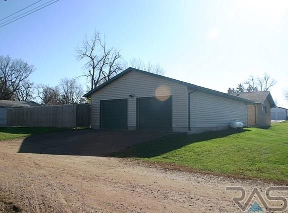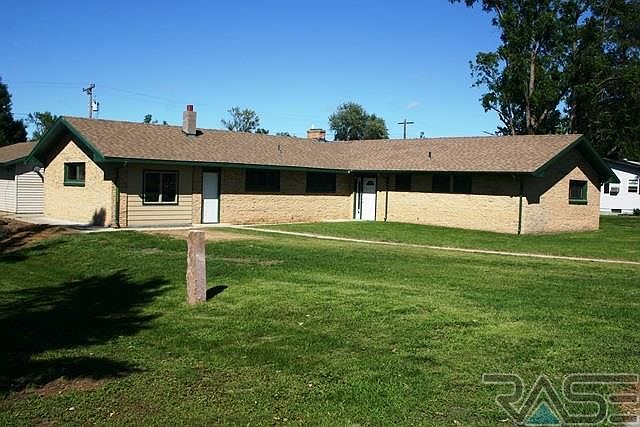 NO STEPS Ranch Style 2174 Sq. Ft. ALL BRICK Home with 3+BR, 2 BA, Family and Hobby Rooms. Large Laundry. 28' X 40' 4 stall heated garage/ workshop with 220V, Cable & Phone. 99.5' X 140' Lot with Alley Access. Lots of New: Windows, Doors, Insulated & Sheet Rocked outer walls, Floor Coverings, C Fans / Lights, Texture and Paint, Shingles & MORE! Shelves and Storage! Maintenance Free. In "GARRETSON The City Of Parks". Short Quick Commute to Sioux Falls, South Dakota!