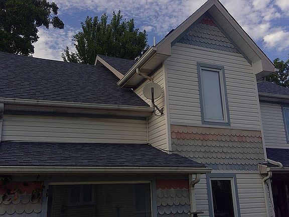 Victorian inspired home, totally rebuilt in 1997. This features large living room with bay window, open kitchen and dining room, sunroom with large windows, 3 nice sized bedrooms, large loft area with beautiful oak built-in bookcases. There is a large over sized 2 car garage with tons of storage/ shop area, covered front porch and fenced in yard! The home has been very well insulated and features a brand new roof in 2020. Great location, just a block away from the elementary school.