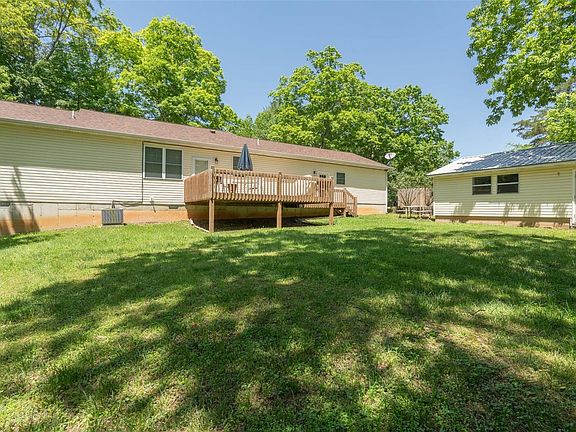 Park like setting at the end of the street. Immaculate, ranch style home with lots of extra features. Open floor plan, 9 ft. ceilings, kitchen with pantry, snack bar and all appliances. Separate dining room with access to 14 x 14 back deck for outside dining. Large master bedroom with spacious bath, shower and soaking tub and attached walk in closet. Two bedrooms and a full bath on the opposite end. Utility room with bar area. Beautiful hardwood floors, double hung windows, ceiling fans and bay windows in master bedroom and living room. Total electric. Attached, oversized, insulated garage, concrete drive, 7 x 28 covered porch and detached 24 x 20 garage. Don't miss out on this hidden gem.