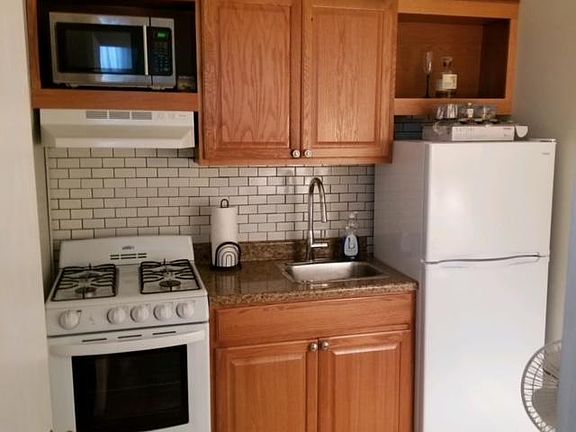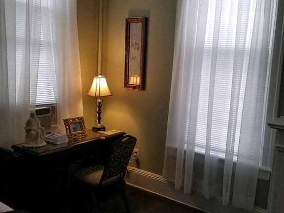 Newly renovated apartment in prominent Downtown Wilkes-Barre Mansion. Located on Wilkes University Campus and close to all Downtown amenities. Quiet, professional building. Includes all living room and bedroom furniture and kitchen necessities. Air conditioner provided. Owner pays heat, hot water, sewer, cooking gas, wifi and refuse removal. Tenant pays electricity. Off-street parking included. First floor common areas are available in addition to front wrap-around porch/veranda. Non-smoking building. (Ash receptacles provided in designated smoking area which is located on front porch/veranda.) One off-street parking space is provided. Sorry, no pet policy is enforced. First month rent and security deposit are required. Preferred lease term is one year. Tenant has no maintenance responsibilities except for keeping a clean, well maintained living area. Please respect other tenant's privacy and quiet enjoyment at all times. Owner pays heat, hot water, sewage, cooking gas, wifi and refuse removal. Tenant pays electricity. All living room and bedroom furniture, including towels are provided along with a smart tv. Mantle in living room/bedroom area. Marble and tile bath with shower. Towels provided. Kitchen includes all appliances and kitchen utensils, dishes, flatware and stemware.