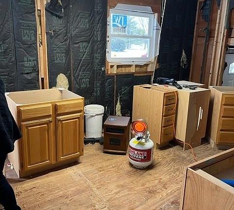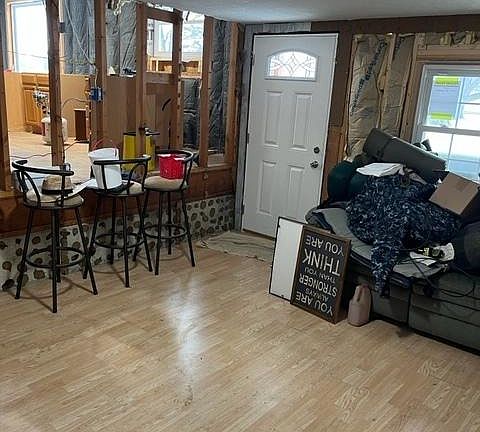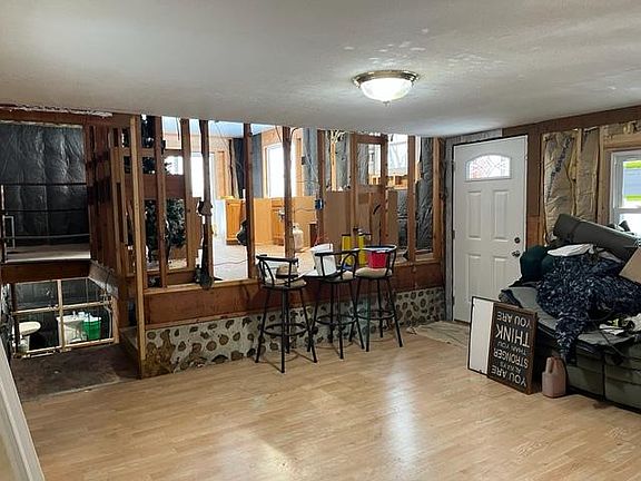 Cozy! 1 bedroom 1 bath. Large kitchen/ dining room combo on the upper floor and living room. New electric, Roof, On demand hot water heater. Mostly new windows and plumbing. Home is down to stud walls, ready for your plan to make it your own.