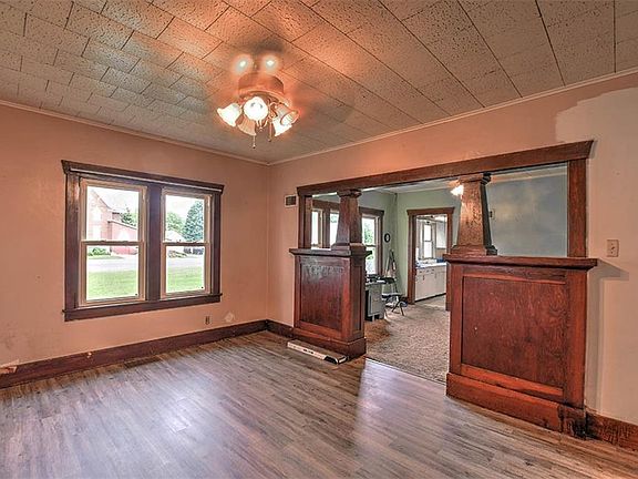 Investor alert! This large home has so much potential and is ready for someone to put their HGTV renovation skills to great use. Large enclosed front porch is a big bonus along with the character of the original hardwood and built-ins. Flex room off of living room would be a great office for someone working from home. Two bedrooms and full bathroom on the main floor along with a huge master suite upstairs. Basement stays dry and has a lot of room that could be finished out because of the higher ceilings or just used for additional storage. Newer furnace. Roof/AC/water heater age unknown. Will not pass FHA, USDA/RD, or VA inspections.