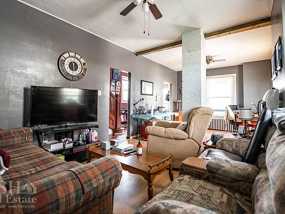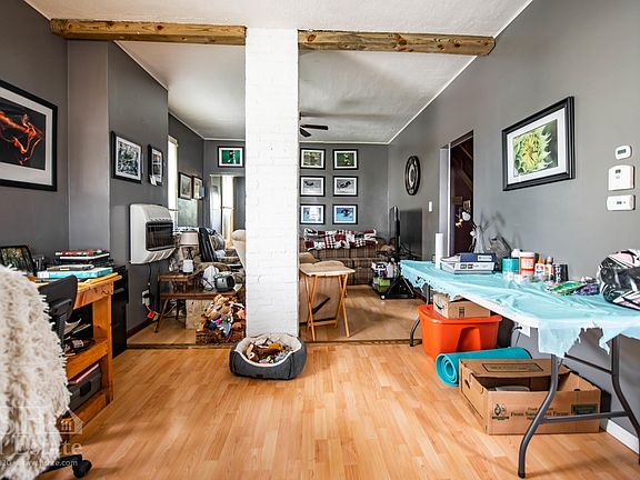 Brick home centrally located on one way street. Features a large living/dining combination, eat in kitchen, 3 bedrooms. Larger back yard and 2 car off street parking. House will not qualify for government financing. Do not open the back door in kitchen or go onto the back porch (no railings and 2nd story) Cat can go in and out.