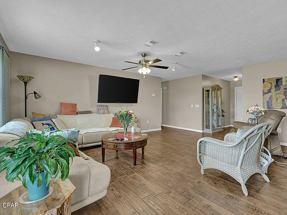 Welcome to your coastal oasis at 304 S Palo Alto Ave! Nestled in the heart of Panama City, this charming home offers a perfect blend of comfort and convenience. With 3 bedrooms and 2 bathrooms, this residence boasts 1327 Sq ft. of thoughtfully designed living space. Enjoy the Florida sunshine in the spacious backyard or take a short stroll to nearby parks and the bay. Conveniently located near shopping, dining, and entertainment options, this home presents an ideal opportunity for relaxed coastal living. Don't miss out on this gem in Panama City's vibrant Cove community! The home is a cute home, very clean. Open living & dining room that leads into the kitchen. Sliding glass doors in the dining area open up to the covered back porch. Wood look ceramic tile is throughout the living spaces of the home with tile in the kitchen & primary bath. Spacious master bedroom has a walk-in closet and the primary bathroom includes a large vanity and walk-in shower. Exterior of home is all brick, has a single car garage, and a large back yard with alley access through a vehicle gate . Home also includes hurricane shutters. and Solar. All sizes should be verified if important.