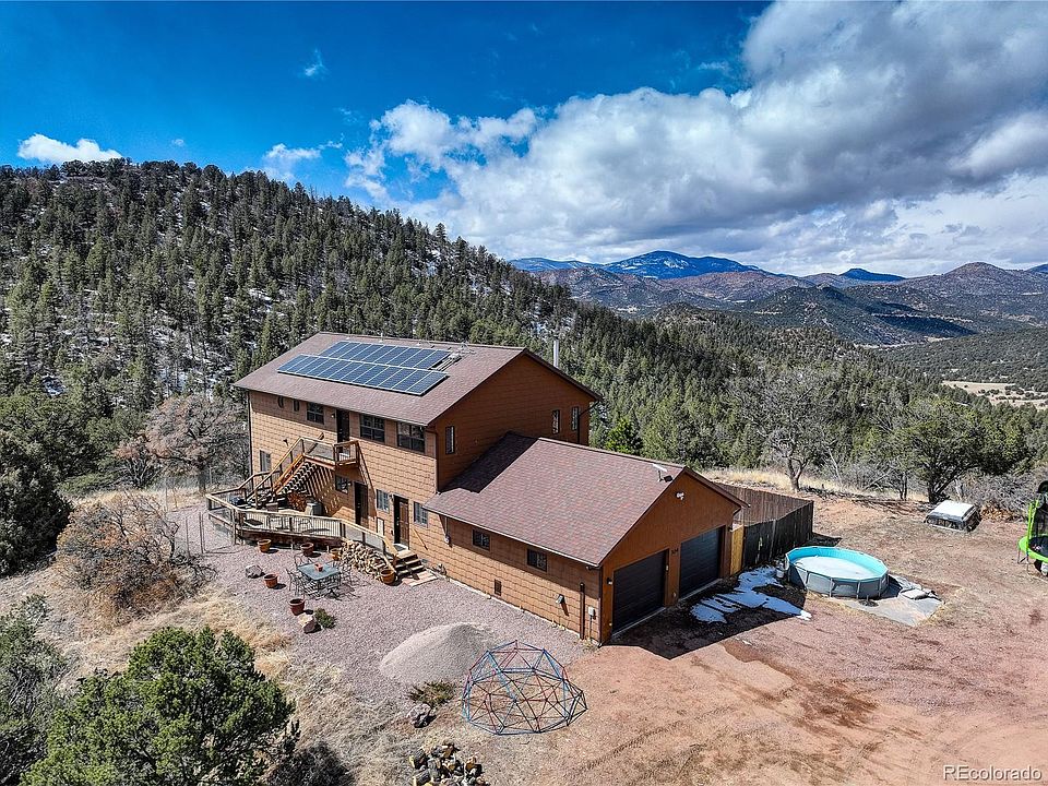 This remarkable private property on 35+ acres offers the perfect combination of seclusion and convenience. With direct access to public land and over 35 acres of private land, you can indulge in endless outdoor activities, from hiking and hunting to horseback riding and ATV adventures. Inside, the luxurious kitchen is a chef's dream, complete with brand-new quartz countertops and a massive island that's perfect for entertaining. The open-concept living area is spacious and inviting, with plenty of natural light and breathtaking views from every angle. Star gazing is perhaps the best feature of this property. With no city lights to obscure the view, you can enjoy the clear night skies and twinkling stars every night. Built custom in 2012, this remarkable private property boasts modern amenities and construction. The relatively recent construction ensures that the building and infrastructure are up to date and built to high standards, providing a comfortable and reliable living space for its residents. The home also features a state-of-the-art propane high-efficiency boiler, which provides reliable and efficient heating throughout the home. With this modern heating system, you can stay warm and comfortable during the colder months while minimizing your energy consumption and costs. And if you want to live off the grid, the high-end solar panels and storage system make it possible without sacrificing any of the comforts of modern living. The home is hooked up to the main grid but you can switch freely between your own solar-generated and stored energy or Blackhill electric. Starlink internet is perfect for all your work-from-home and streaming needs. These are just a few of the many high-end features that make this property truly exceptional. Located just an hour from Sedalia and 25 minutes from downtown Canon City, this truly remarkable private property must be seen to be fully appreciated.