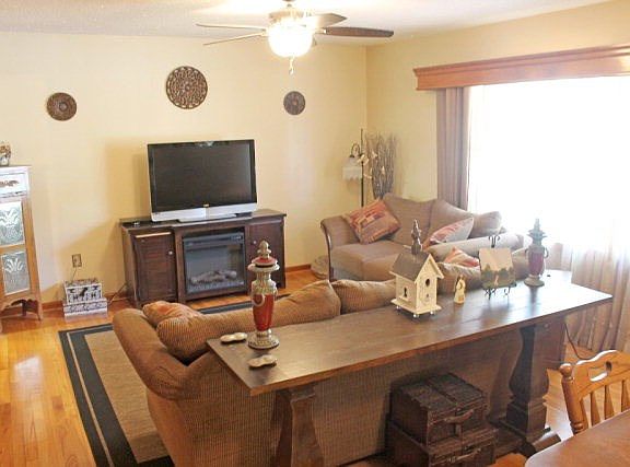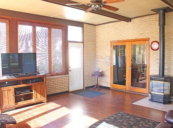 Tucked between corn fields, this solidly constructed brick ranch has a double lot, large garage, additional workshop building, and a huge sunroom with nice fenced yard and patio. The basement has been recently finished with two bedrooms and second bath. The sunroom is heated with a gas stove for year round use.