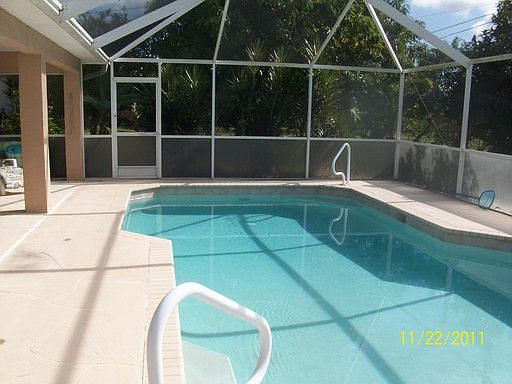 Heated pool, fenced yard 3/2 vacation home available!Enjoy your stay in this nice 3 bedroom 2 bath pool home located in a quiet neighborhood but close to shopping and Sunsplash water park. Pool is heated and home has a fenced backyard. House is tiled thru out, large great room with cathedral ceiling, and separate breakfast nook. Split plan, lots of closets and inside laundry with large pantry. Master has sliders to the lanai. Kitchen has breakfast bar and view of the pool. Pool is off set rectangle with stamped decking. Fully furnished just bring your personal items. Come enjoy your holiday visit to sunny Florida in style. $2200 per month available Sept 1st
