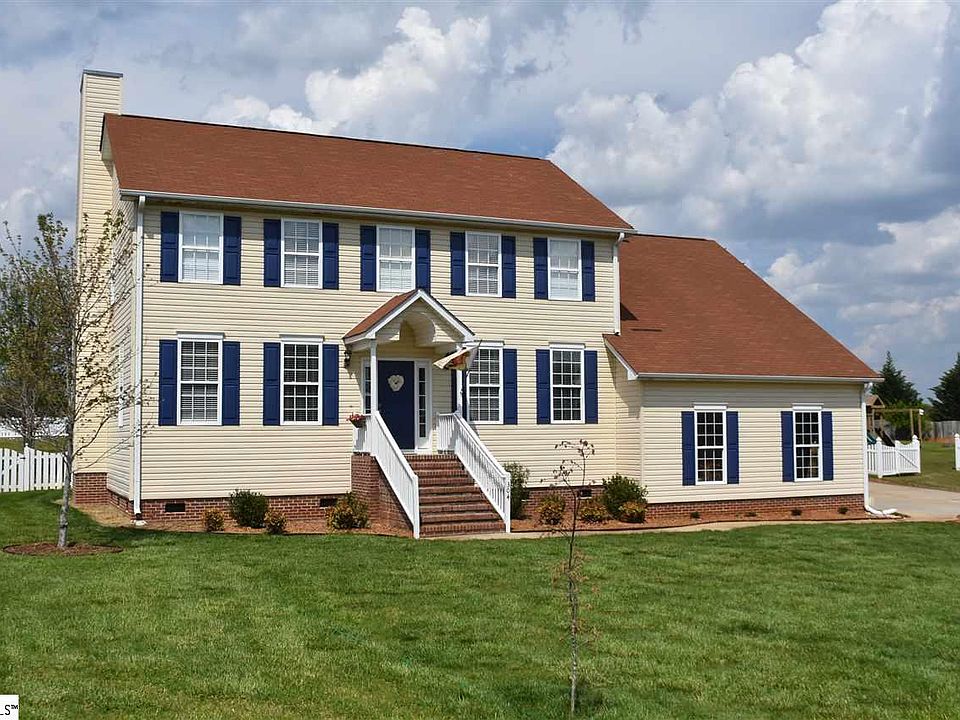 This is one gorgeous horse farm community! Space abounds inside and out with almost 3400sf of living space! This home backs to a great fenced pasture, a central feature of the neighborhood, where your four-legged friends can roam or you can just enjoy the serene view! Inside the foyer greets you with a lovely oak staircase and sliding, barn style wooden doors that lead into a large office with molding, and plenty of sunshine. On the right of the foyer is a large formal dining room. The great room has gas logs, hardwoods and a wide pass through to the breakfast room and kitchen areas. Off the great room is a wonderful sun room with a vaulted ceiling, French doors to the great room and access to the back deck and yard. The breakfast room, located between the kitchen and great room, has lovely bay windows overlooking the back yard and pasture beyond the yard. Granite counters and stainless steel appliances sharpen up this kitchen along with long wooden shelving and a walk-in pantry. You will love all the counter and cabinet space too! Continuing through the kitchen is a 3-way hall that leads to the first full bath and another door to the back deck on the right. The walk-in laundry room with shelving and first bedroom is directly down the hallway. On the left is a staircase leading to the bonus room. The downstairs bathroom is Jack & Jill style with a door to the hall and a door leading into the bedroom. The stairs from the first-floor hall lead up to the bonus room above the garage, which feels massive with a soaring vaulted ceiling and has durable Berber carpet. A second set of stairs lead up to the 2nd floor from the bonus room. The staircase in the foyer also leads to the 2nd story. Upstairs are two more bedrooms a full bath and the master suite. The master suite will hold the largest of furniture sets with room to spare! A great vaulted ceiling and multiple windows give this suite a light and airy feel. You will love the 12 x 8-foot master closet! Double sinks, cabinet space and a deep linen closet wrap up the master suite. The two other bedrooms upstairs are spacious as well. The 2nd full bath, located upstairs, is 10 x 7 and has double sinks. A fenced yard and overlooks the horse pasture directly behind the property. There is a back gate providing access to the fenced horse pasture, raised gardening beds are in place near the fence and don't miss the fire pit towards the back of the yard! The extra-long drive way leads to the 2-car side entry garage and allows extra room for guests to park. A wide gate from the driveway to the back yard makes it easy for a vehicle or riding mower to get through. The front yard has been wonderfully landscaped and the covered front entry way adds even more charm to this already charming home. Newer HVAC units. The Saddlehorn community has horse stalls available for rent and 6 miles of riding trails across Reedy Fork Rd. Lots of space to ride here, plus fisherman will love the 1.60-acre bass lake too!