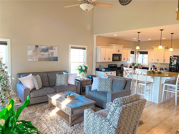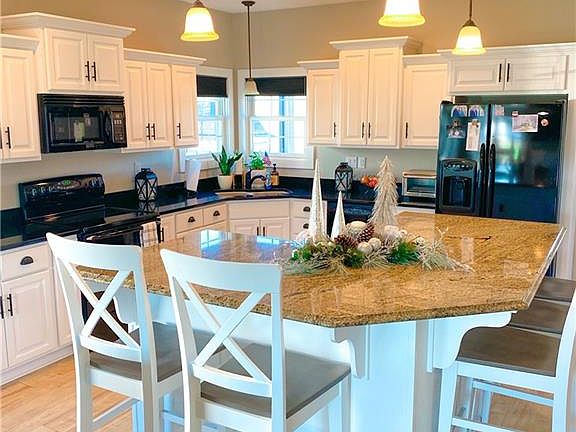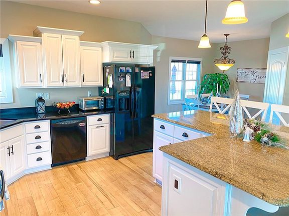 This custom built 4 bedroom home has a lot of curb appeal with an inviting front porch with tapered columns & Cobbled stone accents. The interior offers an open concept with engineered hardwood flooring; an impressive, updated kitchen with 34ft of cabinets with crown molding, granite counter tops, island with bar seating, recessed lighting, appliances, fresh paint, and formal dining area with an atrium door that opens to the new, enclosed backyard deck. The master suite is located on the main level and features a large walk-in closet, a relaxing bath with two vanities, a corner jet tub with a ceramic tile surround and shower. Upstairs, you will find 3 spacious bedrooms with walk-in closets and a landing area. The finished basement has a large family gathering area with a 9ft ceiling, a full bath & storage. You will love the backyard & all the entertaining possibilities with a fire-pit, all surrounded by beautiful landscaping & white vinyl fence. This is a great place to call home!