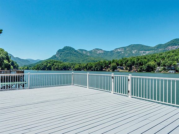 LAKE LURE LAKEFRONT home with 200+/- feet of deep main channel frontage with spectacular unobstructed views of Chimney Rock, Party Rock, and Bald Mountain. Large family style home located on the Western side of Lake Lure. New boathouse with lift and storage. Large party deck with covered sitting area. This quality constructed 4 bedroom/3.5 bath has some of the best views on the lake. This is a million-dollar view! The house is in great condition with higher end finishes, open floor plan, 3-fireplaces, high ceilings and windows with drop-dead views from everywhere. There is plenty of parking along the concrete driveway or in the garage with additional parking in the driveway. New roof, retaining wall, open boathouse, new deck supports and pilings. New stainless appliances. High speed internet on the main level, lower level and boathouse! Close to Lake Lure, Marina, Restaurants, Shopping.
