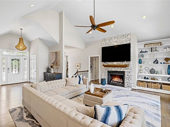 - Wet Bar, Bookcases, Built-in Features, Ceiling Fan(s), Cathedral Ceiling(s), Dual Sinks, Fireplace, Jack and Jill Bath, Jetted Tub, Bath in Primary Bedroom, Main Level Primary, Solid Surface Counters, Sauna, Separate Shower, Walk-In Closet(s), Walk-In Shower, Second Kitchen
