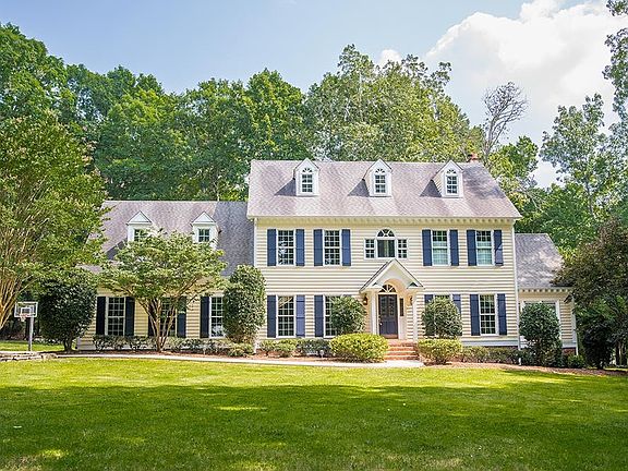 ROOM for ALL in this beautiful home, with 3 floors, privately situated on over an acre on the 16th tee of Treyburn Country Club. Enjoy the expansive outdoor concrete patio, wonderful sunroom, or just relax in this spacious house. The updated kitchen boasts granite counters, stainless steel appliances & walk in pantry. The master suite boasts a deck off of it, spacious, and a closet to die for with lots of built ins. 2 bonus rooms...one on the 2nd floor and another on the third floor! The first floor has an in law suite features a separate entrance! 2 car garage! Concrete paved driveway!