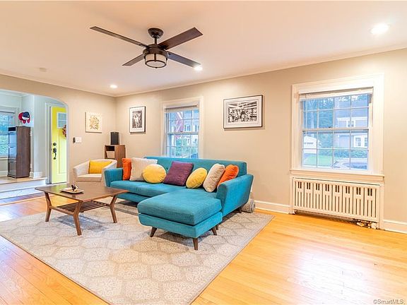 This beautiful colonial is located in the heart of Spring Glen Entry foyer leads to an inviting living room with a fireplace and charming built-ins, a bright kitchen with modern touches and hardwood floors throughout the home. Upstairs you'll find four spacious bedrooms, a full bathroom and a full walk up attic for plenty of storage. Lower level also includes a full bath and a large bonus room that can easily be turned into a fifth bedroom or quiet home office. Modern dimmable recessed lighting has been added in the living room, dining room, kitchen and two bedrooms. Multiple rooms are wired and ready for ceiling fans or central fixtures to add your own touches to your new home. Additional updates include new hot water heater, new wide heavy gauge gutters, ridge vent, stainless steel chimney liner with cap and brand new roof on the rear addition. Large basement has potential for a work space and added storage. This home is located in a wonderful neighborhood and just two minutes from the Merritt Parkway and within walking distance to Hamden High School and Spring Glen Elementary.