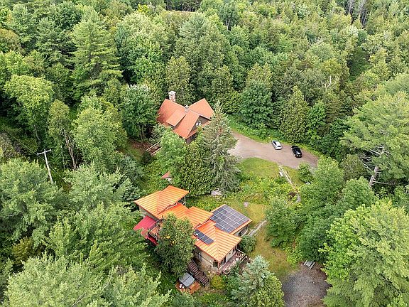 Situated on a very private park like setting of 4.1 acres are two architecturally designed homes that blend traditional and contemporary Adirondack styles. The property is known as Doctor's Inn as the main house, over the years, was the home for several families of doctors who worked at the historic Trudeau Sanatorium. The main home has 7 bedrooms and 6 bathrooms and has been a successful B&B in the past. It presently is being used as 2 long term rental apartments with additional guest bedrooms. The second contemporary style home w/ 1 bedroom & 2 full baths was designed by a Montreal architect with many green features, including solar panels, heat recovery ventilator, on-demand water heater and heated concrete floors.The open floor plan makes entertaining a delight while enjoying the large picture windows facing the Adirondacks. The property also includes a summer sleeping cottage, a hot tub, sauna, roof deck, balconies and a vegetable garden.