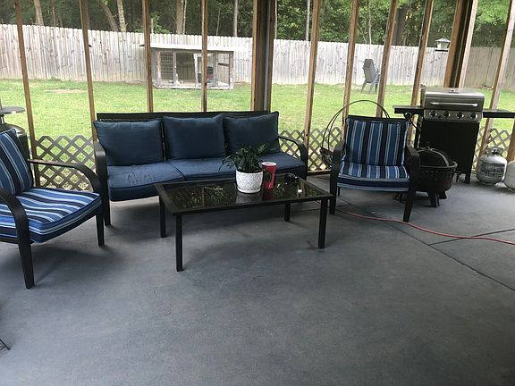 All flooring has been replaced. Laminate wood floors throughout. Ceramic tile in bathrooms and kitchen. Bathrooms have brand new vanities. Master bath has new toilet, vanity with marble countertop. Huge screened in porch and large backyard. Privacy fence. Very quiet neighborhood 10 minutes from McEntire, close to Fort Jackson, 20 minutes from downtown Columbia. Brand new driveway addition. Driveway can park 4 plus 1 in garage. All trees have been removed from the yard. Entire house has been painted recently. Ceiling fans in all three bedrooms, living room, and screen porch. Large storage shed in backyard. Security system installed including cameras. Wood burning fireplace in living room. Crown moulding in all rooms.