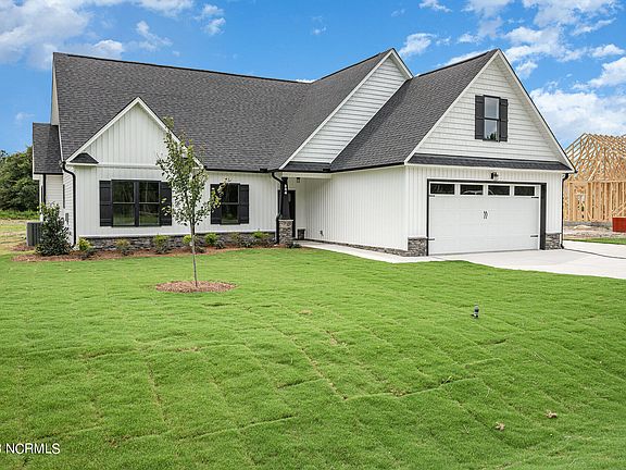 Love the Farmhouse look! This is the home for you! Exquisite ranch home with finished bonus, flex room and full bath up! This open concept plan will leave you swooning! Spacious kitchen w/granite tops, tile backsplash, SS appliances & breakfast bar. Separate dining area and large living room w/fireplace, and laminate flooring. Serene owners suite w/ensuite bath, WIC w/wood shelving, dual vanities, huge shower and separate tub. Sizable secondary beds, hall bath, laundry room w/built ins complete the downstairs! Massive, finished bonus up, flex room is perfect for your home office and full bath makes upstairs living easy! Relaxing screened porch overlooks large lot. Highly sought after pool community close to SJAFB and 45 minutes from Raleigh via the 70 corridor!