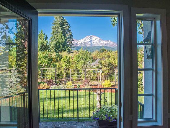 This exquisite home boasts a beautiful view of both Mt. Shasta and the Eddys and was designed to let the light and views be the major feature of the home. It's located on a private cut-de-sac just minutes from the Lake Siskiyou and the Mt. Shasta Resort. There is a modern kitchen with custom cabinets granite counters, gas cooking stove and open to enjoy a your guests. With 2 bedrooms and baths on the main floor there are no stairs to climb and for your guests there is an additional bedroom and bath built in the expansive basement with a private entry and lots of light. This wonderful home has a brand new energy saving heating/cooling system with thermostats in each room...you will never be to hot or to cold with the individual heating options! There are great options for relaxing outside with as you can see by the photos. Storage will never be a problem with a large storage shed, open basement and large garage. This home is a must see if you are seeking light and warmth. The adjoining one acre lot next door is available for purchase.