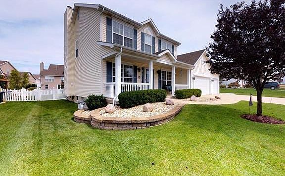 Meticulously maintained 2 story w/finished lower level. 3CAR GARAGE! You will be impressed inside & out. Open floor plan w/separate dining room & office area in the front of the home. This home is great for entertaining. Kitchen features 42" cabinets, island, desk & NEW stainless steel appliances (fridge not included). Main floor laundry. Breakfast room leads to living room & vaulted hearth room w/access to a huge patio & FENCED-IN backyard. Relax in the living room w/gas fireplace flanked by display shelves. Owner's suite has coffer ceiling w/2 walk-in closets + private bath w/double bowl vanity, separate tub & shower. All bedrooms have ceiling fans & 1 additional bedroom has a walk-in closet. FINISHED LOWER LEVEL! The walls are insulated adding additional soundproofing for loud game day parties, or movie nights. There is also a full bath w/jet tub. The location provides walking distance to the pool & great view of 4th of July fireworks.