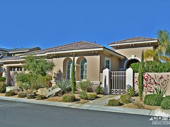 Enter the gates of Campanile to discover the walking village lifestyle designed by Wessman-Gonzalez. Featuring parks, paseos and arguably the desert's best COMMUNITY RECREATION CENTER, which showcases an athletic gym, heated pool, spa, tot-pool, kitchenette, barbecue, fireplace & playground. This Italian style Viletta II model is one of the estate style homes, which includes over 2,700sf of living space, 3 bedrooms, formal dining, den and open kitchen equipped with granite counters, stainless steel appliances, dual conventional/convection ovens, built-in microwave and pot filler over the stove. This guest friendly floor plan provides separation from the master suite, which is complete with dual closets & direct spa access. The master bath includes dual sinks, dual showerheads and spa-jetted tub. Spend leisurely afternoons floating in the pool, sunning on the tanning deck or enjoying lunch under the patio cover and evenings star gazing in the spa or cozied up in front of the fireplace.