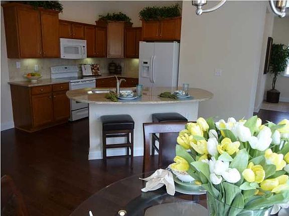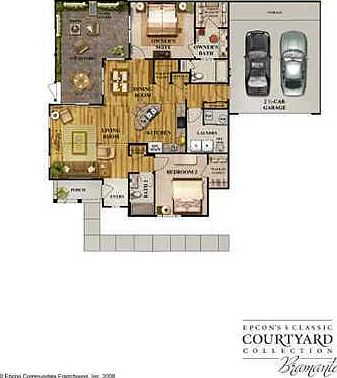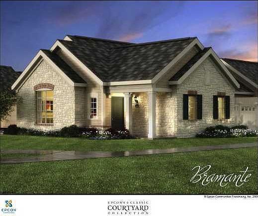 No Upgrading Needed! The Price per SF will be the FINAL Price per SF. This home is loaded with extras and ready to go! Gorgeous "Bramante" floor plan fashioned after an Italian Villa, with private outdoor living space. NO STAIRS! Single-story, fee simple, maintenance free living. This open floor plan with vaulted ceilings features 2 bedrooms, 2 baths and total private square feet of 2250 (includes courtyard and 2.5 car garage). Sunny and open plan with Nine foot ceilings throughout, cathedral ceilings in master bedroom and living room. Gourmet kitchen feautures handsome upgraded Maple staggerd cabinets, granite counters, tumbled marble backsplash, 2 pantries and a fully equipped appliance package. Other appointments include blinds throughout, molding package, roomy owner's suite withwalk-in closet, double vanity in master bath, laundry room, extra large 2.5 car finished and painted garage with opener, ceramic tile foyer and baths, elegant hickory hardwood floors throughout, pre-wires for cable, phone and fans, gas log fireplace, & natural gas heating. Community amenities include fully furnished clubhouse with health and fitness center, deluxe kitchen, billiards room, gathering room complete with flat screen TV, pool complex, and veranda deck to watch the sun set over the pond with fountain. Homeowners association to cover operation of swimming pool and pool deck area, exterior maintenance, landscaping & irrigation, insurance, and termite bond.