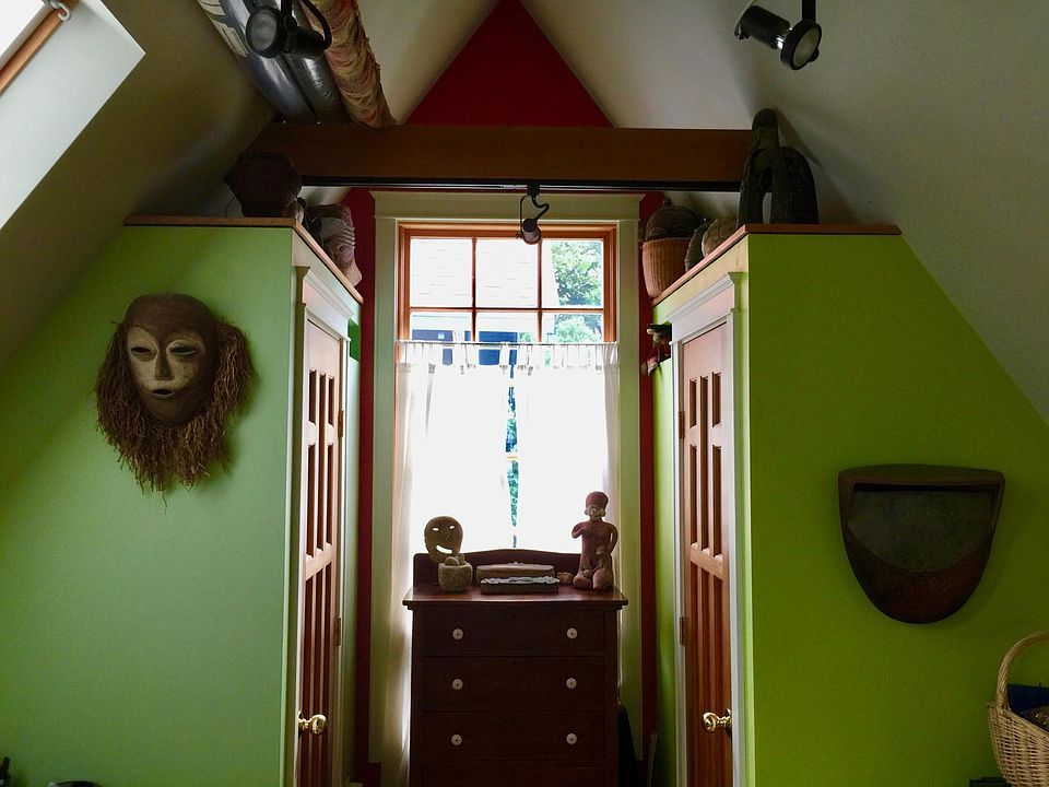 UPSCALE 2 STORY CARRIAGE HOUSE/STUDIO IN ARCHITECTURALLY UNIQUE SETTING COMBINE LIVING + WORK IN AN AMAZING SPACE: A secret garden, haven, sanctuary, waits for you ... (you may rent entire tiny home, with living space and work/studio space). * * * * * * * * * * * * * * This is a very unusual, very cool, 2 story structure, tall and narrow. . . with a self contained living space on the near west side. Original owners were local architects, and it has been since maximized to create a totally unique space. Architectural innovation, attention to aesthetics and optimal function, make this a showplace for art and artifacts and celebrating the creative spirit. The second floor is primary living space with a fully equipped Corian/stainless kitchen, half bath, vaulted ceilings, 5 skylights, hardwood floors. It is furnished with the basics, now has a newly provided full-size bed w/ memory foam topper and built in storage. The first floor is studio and workspace, and contains a full bath w/slate shower, accessible for the tenant. Designed as a clay studio, it has been used as violin-maker's workshop, painting studio, and work-from-home office. It can be mocked up as living or sleeping space, music practice, or other creative use. Comfortable single futon/loveseat provided, great for out of town guest. French doors lead to a shared deck, great gardens and patio, and the camaraderie of residents of the main house and artist landlords. Within the compound, is a main house just a stone's throw down the path, where we are committed to recycling, treading softly on the earth, sharing diverse philosophies and making the world better for being in it. We agree to no drug use of any sort (except if you get sick), no tobacco on the premises, and infrequent use of alcohol. Friends/occasional respectful guests are welcomed, but a partying lifestyle, lots of guests simply wouldn't work here. The group is exceptional, friendly, and looks forward to welcoming you -- may sometimes sit out on the deck with you, occasionally share a meal or cook out. When they're around, the owners like to make pizza or grill salmon and have group pot lucks together. We look for tenants who are friendly, quiet and respectful, take super care of this incredible space, and will pitch in on any outdoor chores that need doing. The landscaping and deck create a lovely retreat . . . flowers, trees, perennials, shrubs, an herb garden, some vegetables planted . . . backyard has a gate and arbor, privacy fence, walkway from the deck to the main house. A pleasant, peaceful neighborhood, close to parks, less than a mile to Main Street. An easy bike ride to campus, close to AATA bus line (free to UM students/staff). Ample on street parking if you have a car. Convenient bus route to UM med center, great for a grad, researcher, writer, artist, musician or professional. Rent: $1650 + utilities, for 1st and 2nd floor exclusive use. (Rent is normally $1800/mo, reduced for the remainder of the academic year...) Available now for a 10 or 11 mo. lease, but may be leased short term 2-3 mo. until mid December, when another tenant is applicant is asking to come in from the UK.. For more info contact Dina or Steve Offstreet parking available through winter for + $50/mo...