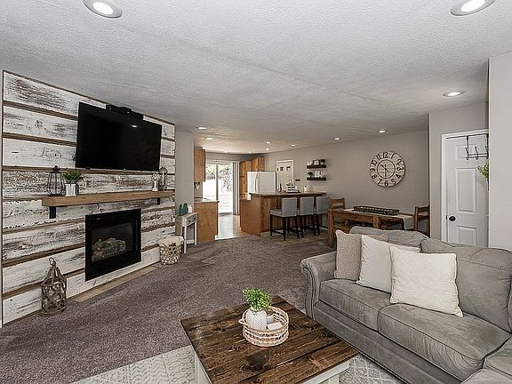 This move in ready ranch is located in a family-friendly neighborhood, on a quiet street. The main level is open concept, has carpet, laminate and tile floors, and features a gas fireplace on a stunning barn wood feature wall. Also on the main level are 3 bedrooms and a full bath. The kitchen features laminate floors, laminate counters and breakfast bar. Appliances stay with the home. The master bedroom is located on the main level and features carpet floors. The finished lower level features a completely new full bath (2020) with a 4x8 walk in shower! Lower level living area also includes a family room, bonus space, storage area and laundry room. Outside you'll find a porch and patio overlooking the yard. Exterior features include a storage shed.