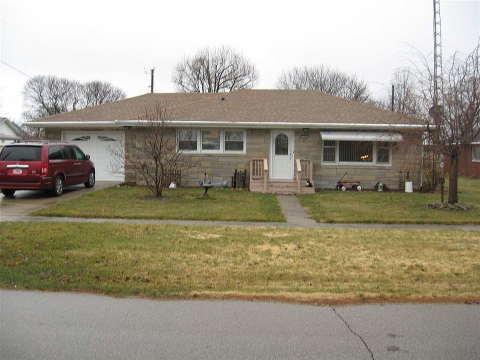 304 W Brown Street, Fulton 46931-Bedford stone one story home, 2 bedrooms, full basement, attached one car garage, fenced rear yard, storage shed, move in ready!