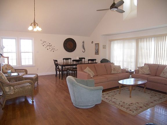 UNIQUE 2 STORY CONDO WITH POOL - DON'T MISS THIS! This two story condominium is a must see, it is so different from the others in this price range! The open floor plan is bright and airy, with a great room with beautiful hardwood flooring, cathedral ceilings and plenty of windows to allow natural light into the space. The great room includes a living room and dining area that leads to a private deck, and a full kitchen with stainless steal appliances and tile backsplash. Also on this level you will find the master suite with a private bath and large walk-in closet, and a guest bedroom with a hallway bathroom. There is a laundry closet equipped with a full size washer and dryer for your convenience on the first floor as well. The second floor has an additional master bedroom suite with sitting area and a private bath with a shower. Some of the other amenities include 1 car parking in the garage and 1 car parking in the driveway, outside shower, and POOL. The condo association is small, consists only of five units, has affordable monthly fees and is pet friendly. The condo fees of $250/month cover the cost of exterior insurances for fire, flood and liability, pool and common area maintenance. The unit is offered fully furnished. Conveniently located close to Otton's Harbor, many restaurants and other attractions our island has to offer. Call today!