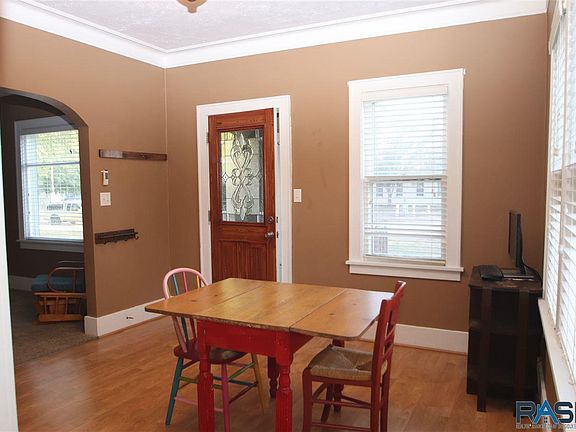 Charming story and a half located in a desirable neighborhood in Beresford. Enjoy the small town feel with the convenience of being close to Sioux Falls. Amazing natural light throughout, handy kitchen and formal dining room provides space to entertain. Multipurpose room upstairs can be used for an office, exercise room, game area or play room. Total of 3 bedrooms, 1 bathroom and 1,168 square feet finished with two car detached garage plus shed.