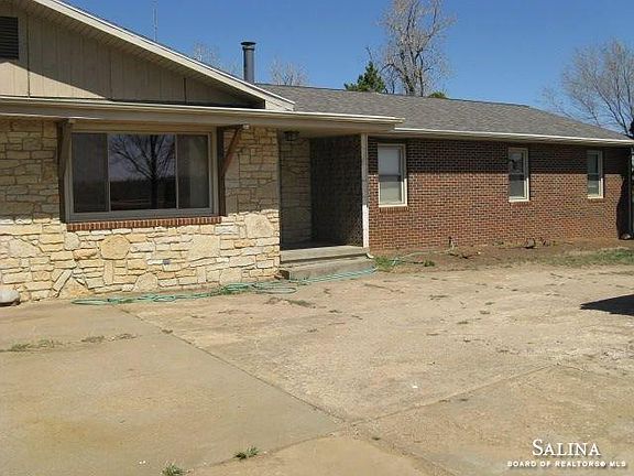 Awesome 4 bedroom/3bath stone/brick ranch on 1.06ac; minutes from Salina; living room w/fireplace; huge family room; newer kitchen cabinetry/solid surface counters, pantry & all appliances; main floor laundry w/stackable washer/dryer; large master suite w/his-her closets; hallway walk-in closet; full unfinished basement w/wworkshop & woodburning stove; home has patio, fenced yard, utility building; well & Rural Water 1 Elm Creek; vinyl clad replacement windows, maintenance free soffits & fascia;