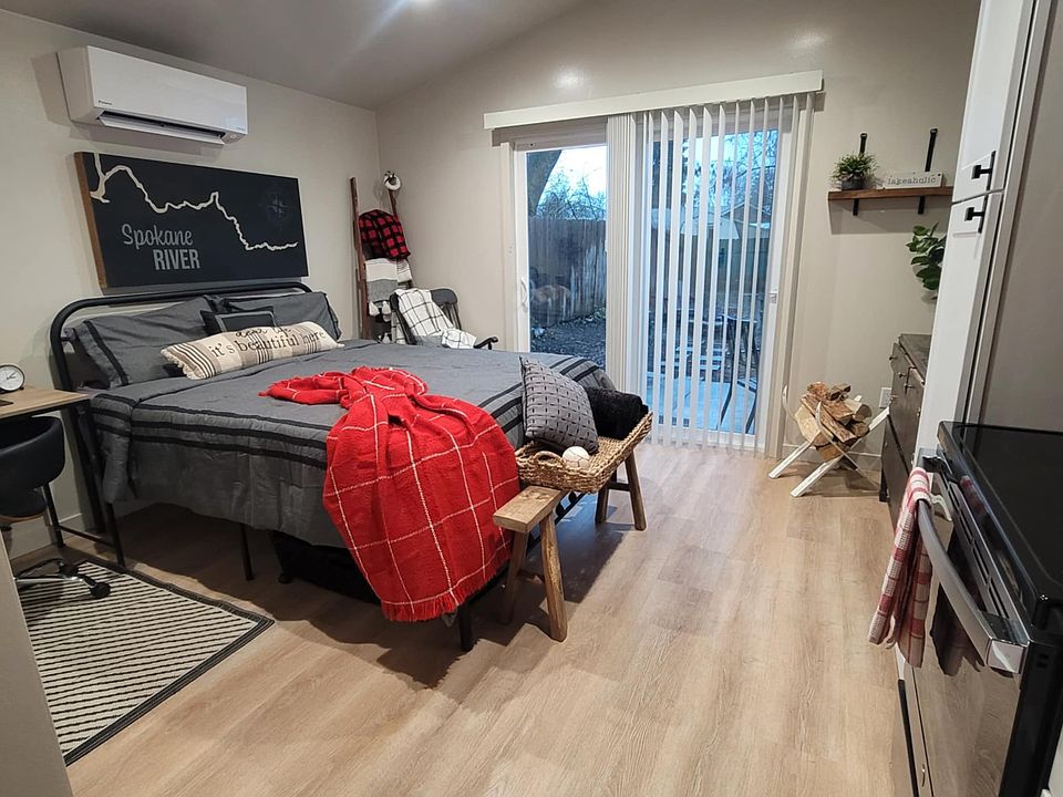 Charming CDA Bungalow Private Fire pit Lounge Minutes to Lake & Downtown Welcome to your private Coeur d'Alene retreat a bright, peaceful bungalow, designed for travelers who crave both comfort and simplicity. Light the fire pit, sip morning in your private yard, or take a quick 5-minute drive to the lake and downtown CDA's cafes, boutiques, and trails. Whether you're in town for adventure or work, this cozy space makes it easy to settle in and unwind. Perfect for couples or solo travelers, our space features a thoughtfully designed interior, ensuring a relaxing stay. There is a desk with charging station for those who travel and work from home. Upon entering, you're greeted by a warm ambiance and tasteful decor. The room's highlight is a plush queen-size bed adorned with luxury linens, promising a restful night's sleep. Spacious closets provide ample storage for your belongings, allowing you to unpack and feel at home. For guests who love to cook, our well-equipped kitchen awaits. It's furnished with all the essentials you need to prepare delicious meals. You'll find everything required to whip up your favorite recipes, from a stove and oven to a microwave and refrigerator. Enjoy your meals at a charming dining area, perfect for intimate dinners. Step outside to our private patio area, where a cozy firepit invites you to unwind under the starlit sky. Whether sharing stories or simply enjoying the crackling warmth, this outdoor space is ideal for creating lasting memories. Private backyard fire pit lounge relax under cafe lights Fully equipped kitchenette coffee, cookware, and local flair Cozy queen bed with premium linens Fast Wi-Fi + workspace (great for remote stays) Pet-friendly with fenced yard and easy outdoor access Free parking on-site Full laundry setup ideal for remote workers or traveling nurses Blackout curtains for a good nights sleep Conveniently located 5 min from Kootenai Health perfect for traveling nurses or relocation stays Close to everything 5 min to Lake Coeur d'Alene, downtown shops & restaurants Will send video upon request. All utilities paid Applicant pays Application Fee (50) Cleaning Fee = $250 Deposit = $500 Pet Non refundable deposit $95.00 Mid or Long Term available.