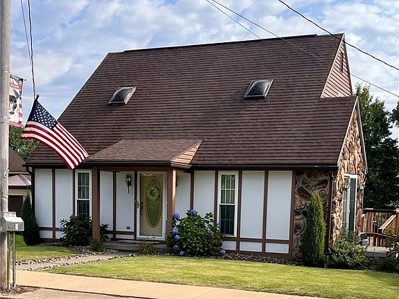 A charming Cape Cod Tudor home located on Main Street Rural Valley. Feel the warmth and care put into this charming 3 bedroom, 2 bath home. Enter the front door into an open living room and dining/kitchen area . A first floor full bath and bedroom complete the main level living. From the kitchen step out onto the deck which is overlooking the back yard with an off street parking pad. Upstairs has another full bath and 2 additional bedrooms with skylights. The basement is partially finished with a laundry area and patio. This home has plenty of storage and appliances complete with a shed. Close to restaurants and the Elementary school and just 1 block from the community park. This is your chance to put your name on this house and make it your new home !