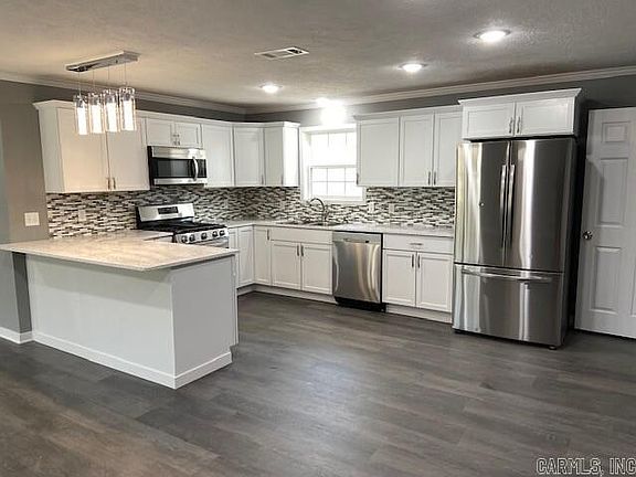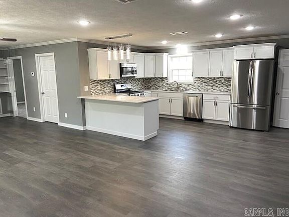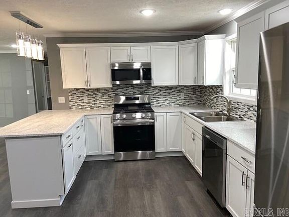 NEW PRICE! GORGEOUS REMODELED 3/2 ON .88 ACRE! BEAUTIFUL!! This 1500 square foot home was taken down to the studs and completely remodeled with new roof, siding, windows, blown in insulation, 100% new electrical, updated plumbing, updated subfloor, sheet rock, cabinets, Corian countertops, marble master bath vanity, stainless appliances, LG front load washer and dryer, built ins, 2 walk in closets, pantry, interior and exterior doors, water heater, light fixtures, ceiling fans, LVT and carpet, fixtures and new Champion central heat and air! The home has 3 bedrooms and 2 bathrooms including master suite! Open floor plan with kitchen, dining and living room combo. HUGE pantry! Home sits on 4 lots equaling .88 acre. Small deck. 10X12 shop. City utilities and natural gas. Long covered farm house front porch! Don't miss this one!!