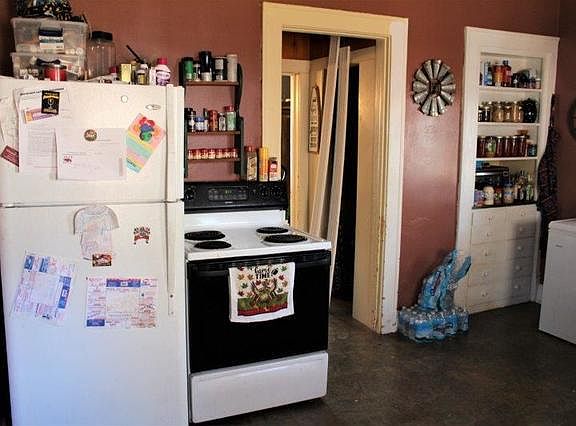 Two story home on nice wide street. You can have 1 bedroom on the main floor and 3 upstairs. The kitchen features some built in drawers with shelving above it, besides the traditional cabinets. Eat in the dining room and the living room has a built-in desk with shelves. Main floor full bath with nearby laundry with stackable washer & dryer. Spacious yard with a 10' x 14' shed and room for a garage off the alley. Contingent on Sellers getting home of choice.