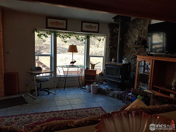 Fisherman's dream! New roof, ILC, and Foundation inspection already completed. This property sits right on the Big Thompson River and the owner says the fly fishing is great! Road maintenance agreement is $65/year for access road snow plowing. Home is manufactured on pier foundation and split log sided. Open and spacious floor plan with plentiful storage space. Priced below recent appraisal! Large bay windows in living room and kitchen offer views of the river, mountains, and surrounding wooded areas. Come enjoy mountain living in this lovely, easy access home! Several out buildings including a hot tub building (no hot tub) with electricity.. Several fruit trees, 2 arbors, and beautiful flowers and trees all planted by seller and producing as of last season. No contingencies please. Looking for a quick as-is closing for this price.