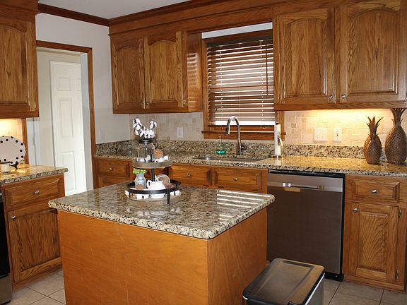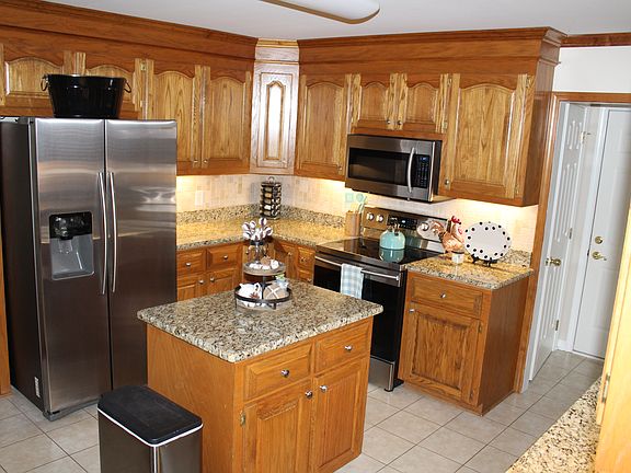 • Kitchen: Counter Tops-Formica, Eat In, Pantry, Island, Floors-Hardwood, Cabinets-Stained