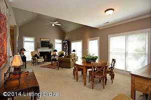 Beautiful, spacious townhome. Quiet St. Matthews location near shopping, churches, restaurants. Great Room with valulted ceiling, ceiling fan, gas fireplace and windows with transoms providing wonderful light, all wood blinds. Doors to Patio from Dining area. First floor Master has sitting area, walk in closet, ceiling fan, double (NEW windows) and master bath, ceramic floor, glass shower and jacuzzi. Kitchen is bright, white cabinets, new fridge - inviting with eat in area, and long hall to laundry and attached 2 car + garage for convenience. Upstairs, a second and third bedroom, one set up for a second Master with Bath, double vanity, double closets, dormered area attractive and bonus room (unfinished attic for superior storage space!) Third Bedroom, used as home office or TV Room, has