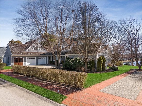 Indulge in waterfront luxury living in this stunning home nestled on a double lot with breathtaking views of Wickford Harbor in the premier Wickford Point. The open floor plan seamlessly combines elegance & functionality. Boasting a first floor primary bedroom with access to the outdoor patio with spectacular water views. The lavish en-suite bath and spacious walk-in closets completes this retreat. A tranquil office/library with custom built-ins opens to a music room, providing space for work, creativity or quiet reading. The gourmet kitchen, complete with a pantry, inspires culinary creativity and flows into the dining room, perfect for entertaining. Relax in the living room or in the cathedral family room fireplace, both offering panoramic water views. Upstairs, three bedrooms offer comfort & privacy, all with water views and access to a full bath. A private Game Room/Bonus Room over the garage adds versatility & privacy. The finished lower level features a spacious family room, office, wine cellar, and ample storage. A 3-car garage plus shed/boathouse provide additional storage for watercraft or equipment. Enjoy sunsets from the wrap-around front porch or patio. Step outside & explore 81 acres of beautiful walking trails, kayak to Wickford Harbor, or enjoy a spectacular 3-acre common area with a large dock and views of both the Jamestown and Newport Bridges. Experience luxury and tranquility just minutes from highways, shopping, and town. Town water, sewer, & natural gas!