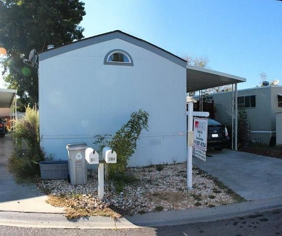 Cozy 2bed/2bath home! Serial #9M700669M. Home has carpet throughout. Living room and bedrooms have wire for cable and phone. Kitchen has garbage disposal. Guest bath has linoleum, hollywood lights, medicine cabinet and tub and shower. Master bath has standing shower, linoleum, hollywood lights and medicine cabinet.Full length 3 carport parking. Space rent is $1,225