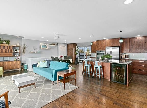 - Eating Space / Kitchen, Open Floor Plan, Five Piece Bath, Kitchen Island, Master Suite, Updated, Window Coverings