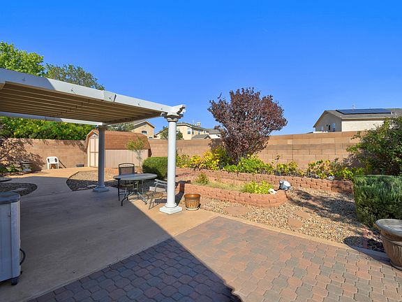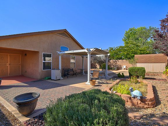 Discover comfortable living in this 4 bedroom, 2 bath home in the desirable Huning Ranch area of Los Lunas. This splendid residence comes complete with a spacious 3-car garage, vaulted ceilings, marble window sills, and refrigerated air. Enjoy the convenience of proximity to parks and amenities while relishing your own private oasis. The fully landscaped backyard is a haven, featuring a covered patio for outdoor relaxation, charming flower beds, a pergola, and a handy storage shed. Too many features to list so schedule your tour today.