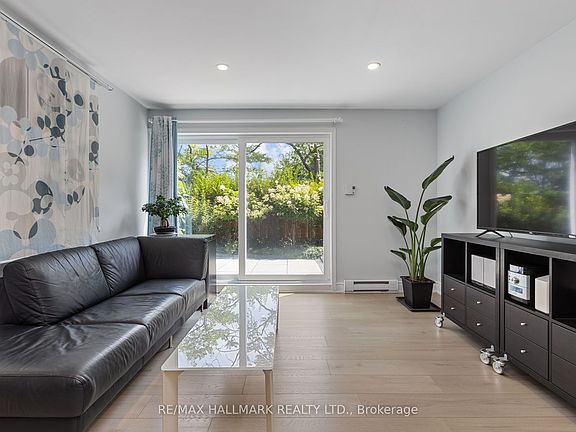 Private south-facing garden oasisFully fenced yardMature greeneryRenovated open-concept main floorWide-plank vinyl floorsSmooth ceilingsDimmable pot lights