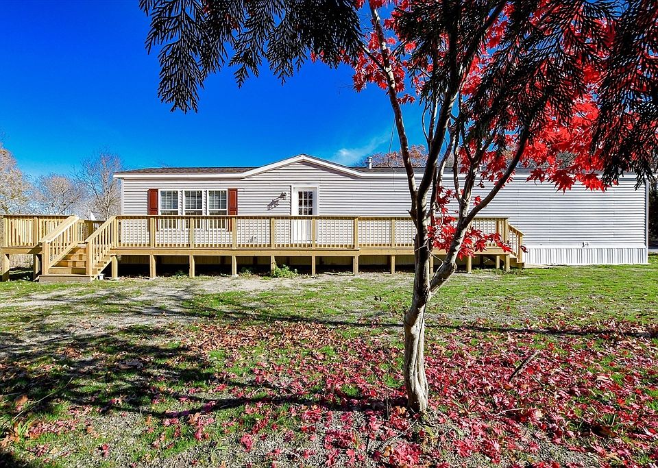 Welcome to Garden Homes Estates East, Pond front on Dicks Pond, NEW 2025 Pinegrove home, 2 bedrooms 2 bath, main bath features walk in shower, sliding glass door, laundry closet with cabinets for storage. 2nd bath with a tub shower, window for natural light. open concept kitchen, stainless steel appliances, recessed lighting, living room with slider to deck beautiful views of the pond. Imagine sitting in your deck watching the sunset over the water with family & friends. The current $525 monthly fee includes, taxes, septic, water, snow removal park roads, trash, lot/land lease. Park Approval is required. Close to Wareham Crossing shopping, beaches, golf, Rosebrook medical center, Cape cod canal, great highway access. Contact me Today for your private tour of this new home!!!! some pictures virtually staged.