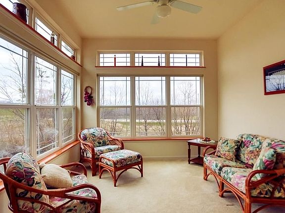This is NOT your typical Condo! Located in desirable Hunters Ridge Golf Community. This offers unique features not found in most Condo Developments. Situated on a quiet cul-de-sac, with a 3 seasons porch, deck, walk out lower level, with covered patio, and views of both a serene private pond and Hunters Ridge Golf Course tee #8. Also, hard to find are 3 large bedrooms with 3 full baths. This has all the features of a large home, Formal Dining plus open kitchen with Eat-in area and 2 breakfast bar options, vaulted great room with gas fireplace, main floor laundry, lower level family room with snack center, is convenient to the 3rd bed (currently used as a peaceful office space) and bath area. The Garage, Storage and Mechanical rooms all reflect the care and maintenance of this homeowner, with clean and organized spaces. Don't miss the Heat Recovery Ventilation System in the mechanical room, that serves to save energy, circulate fresh air and warms air coming into the HVAC system for more even heating.
