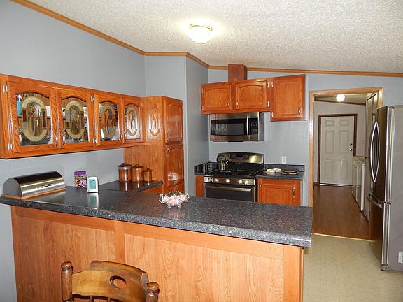 This 3bdr 2 bath manufactured home has it all,10+ acres,trails throughout.deer blind, seperate fenced in garden and orchard,green house,chicken coup,every thing for the hunter and mini farmer,also large heated pole barn for the toys and other hobbies.