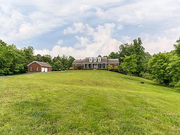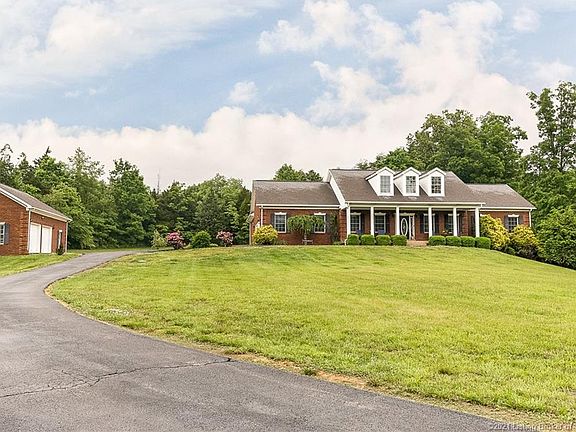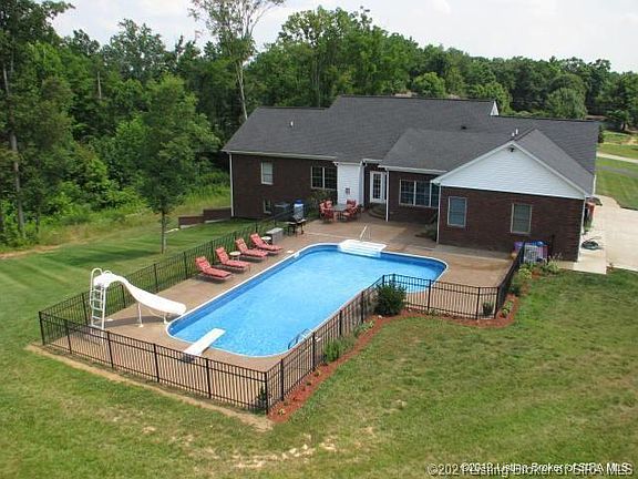 What a beautiful setting! This custom blt home sits on 5 acres buffered by trees on 3 sides. The pretty kitchen has cherry stained cabinets w/ granite and stainless appliances (brand range & M-wv new). Split bdrs, formal dining room, formal living room (perfect for home office) and spacious family room which looks out onto the INGROUND POOL & patio area. Downstairs you'll find a huge fam room, full kitchen, big bathroom & tons of "flex space" to use however you imagine (game room, family room, craft/exercise, bedrooms etc). Two rooms that could serve as add'l bedrooms have no window egress. In the game room area, the pool table stays. The outdoor spaces will delight! Pool w/ slide, patio surrounding it and it's fenced for safety. New pool liner in 2016, pool pump 2020. The HVAC system with dehumidifier is about 2y old. QUALITY CONSTRUCTION: 2x6 exterior walls, PELLA windows & I-joist construction. *The price reflects the need for some fresh paint and carpet. Check out this BIG DETACHED GARAGE! It's huge with loft area for storage. Plus, it's wired, insulated, has an office area & bathroom! This home sits about 6 miles off the Lanesville exit, halfway between Lanesville and Corydon. Seller provides a 1yr home warranty.